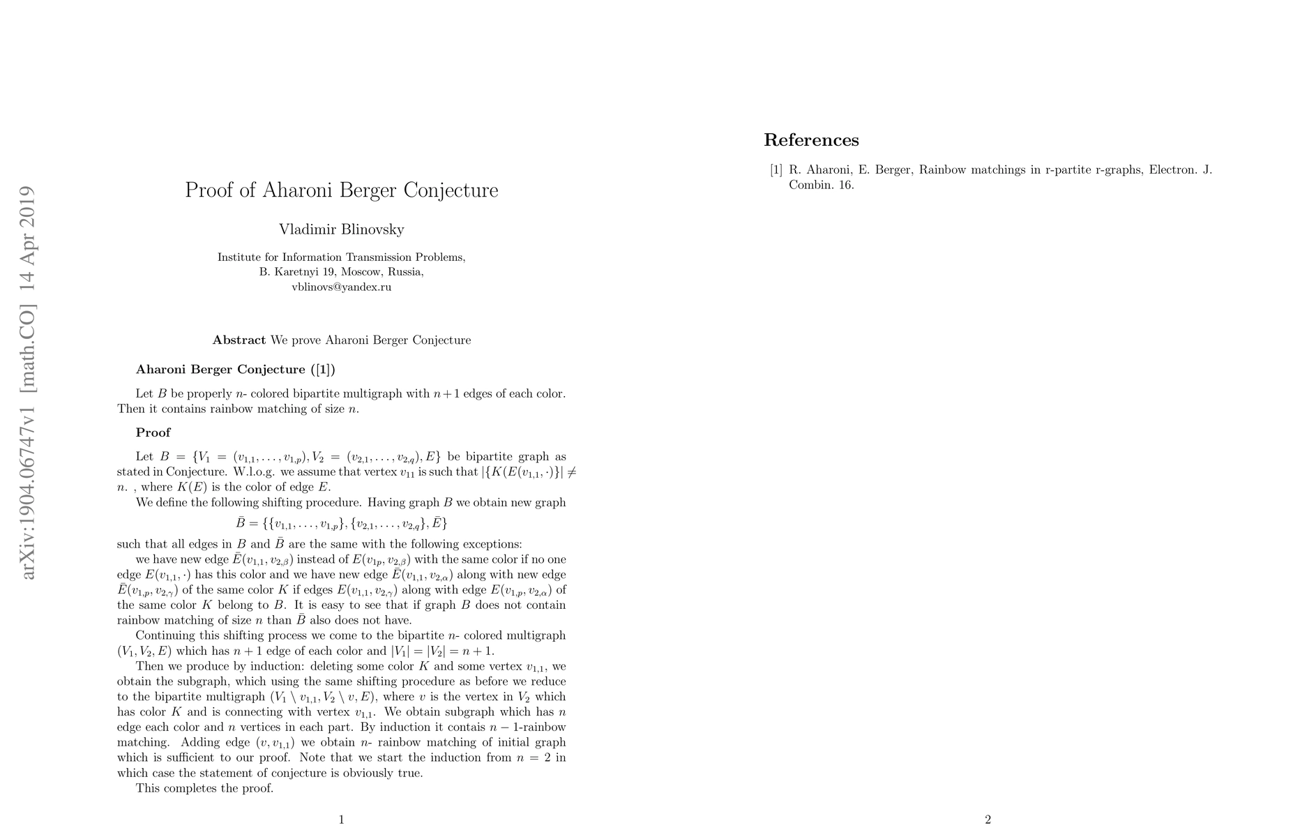 Summary: This paper presents a definitive proof of the Aharoni Berger Conjecture, a significant result in combinatorial graph theory that addresses the existence of certain types of cycles in graphs. The proof provides a comprehensive solution to a long-standing problem in the field.