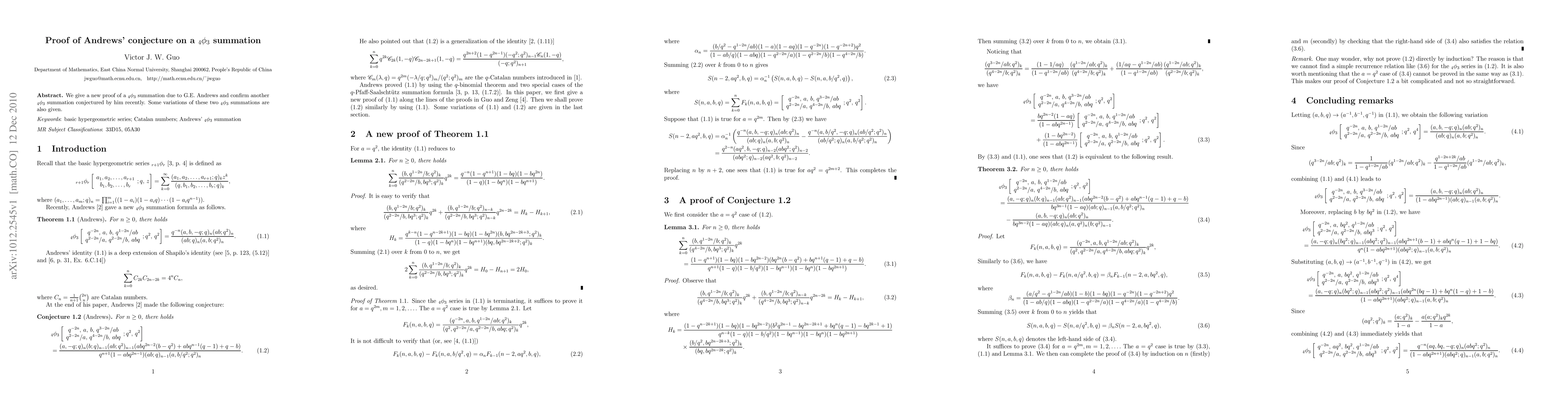 We give a new proof of a_4\phi_3 summation due to G.E. Andrews and confirm another_4\phi_3 summation conjectured by him recently. Some variations of these two_4\phi_3 summations are also given.
