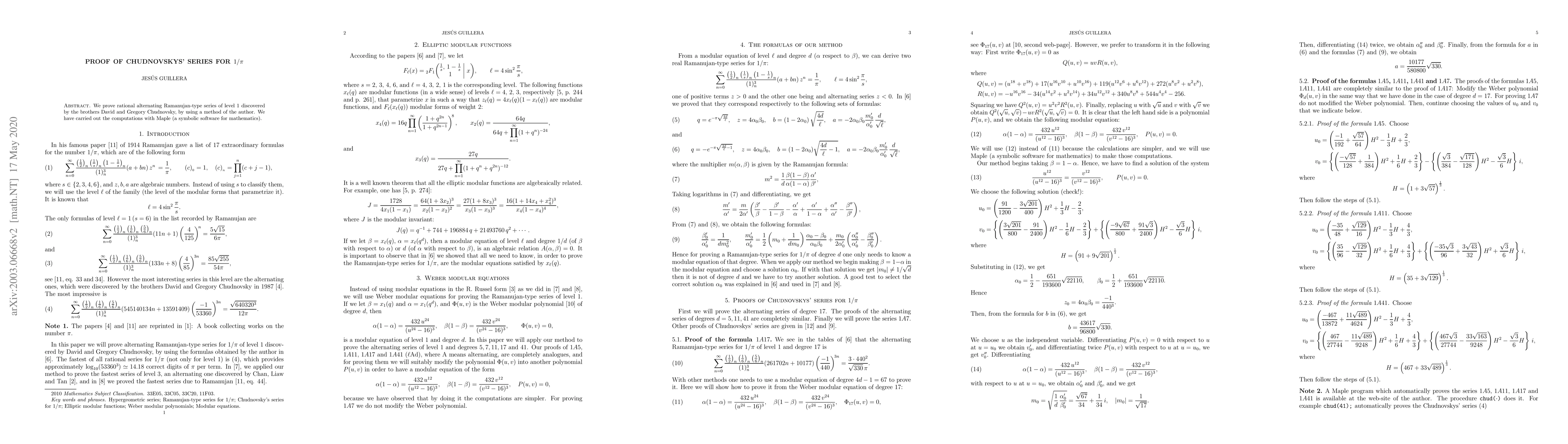 This paper proves the Chudnovsky brothers' rational alternating series for $1/\pi$ using a novel method and computational verification with Maple. The focus is on the convergence and accuracy of the series.