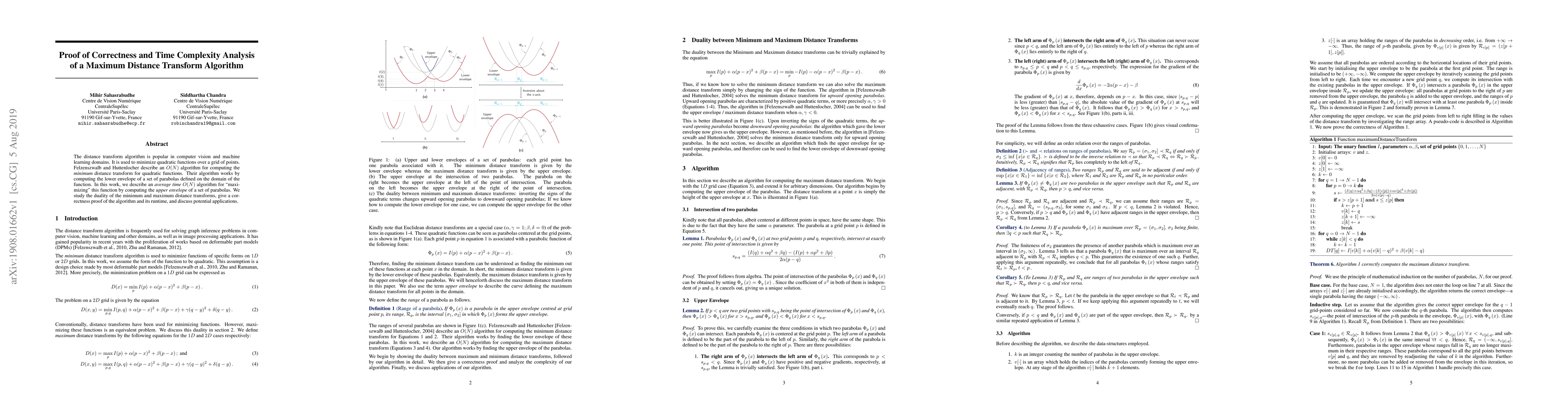 Researchers developed an average time O(N) algorithm for maximizing distance transforms, providing a correctness proof and exploring potential applications in computer vision and machine learning.