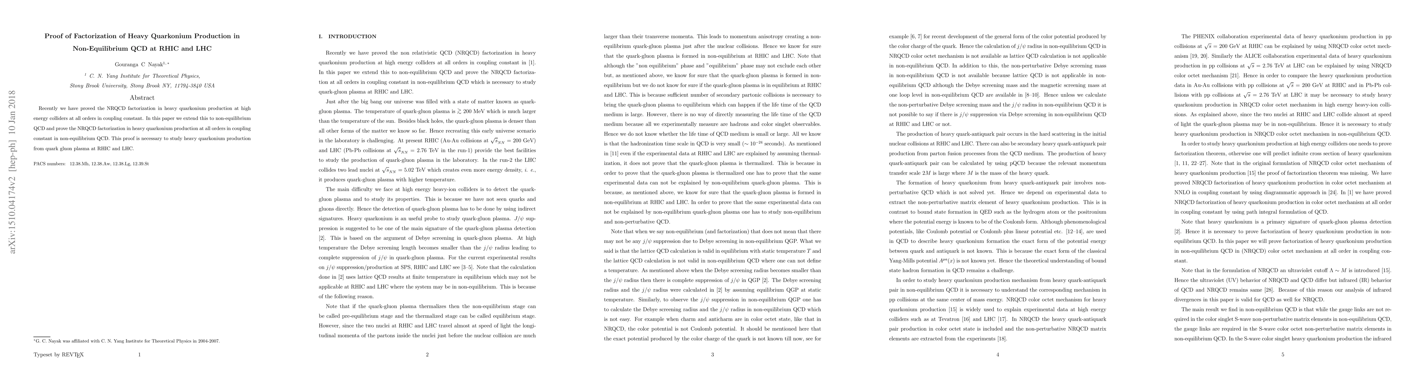 This paper proves NRQCD factorization for heavy quarkonium production in non-equilibrium QCD at all orders in coupling constant, extending previous results to high-energy colliders like RHIC and LHC, crucial for studying quark gluon plasma.