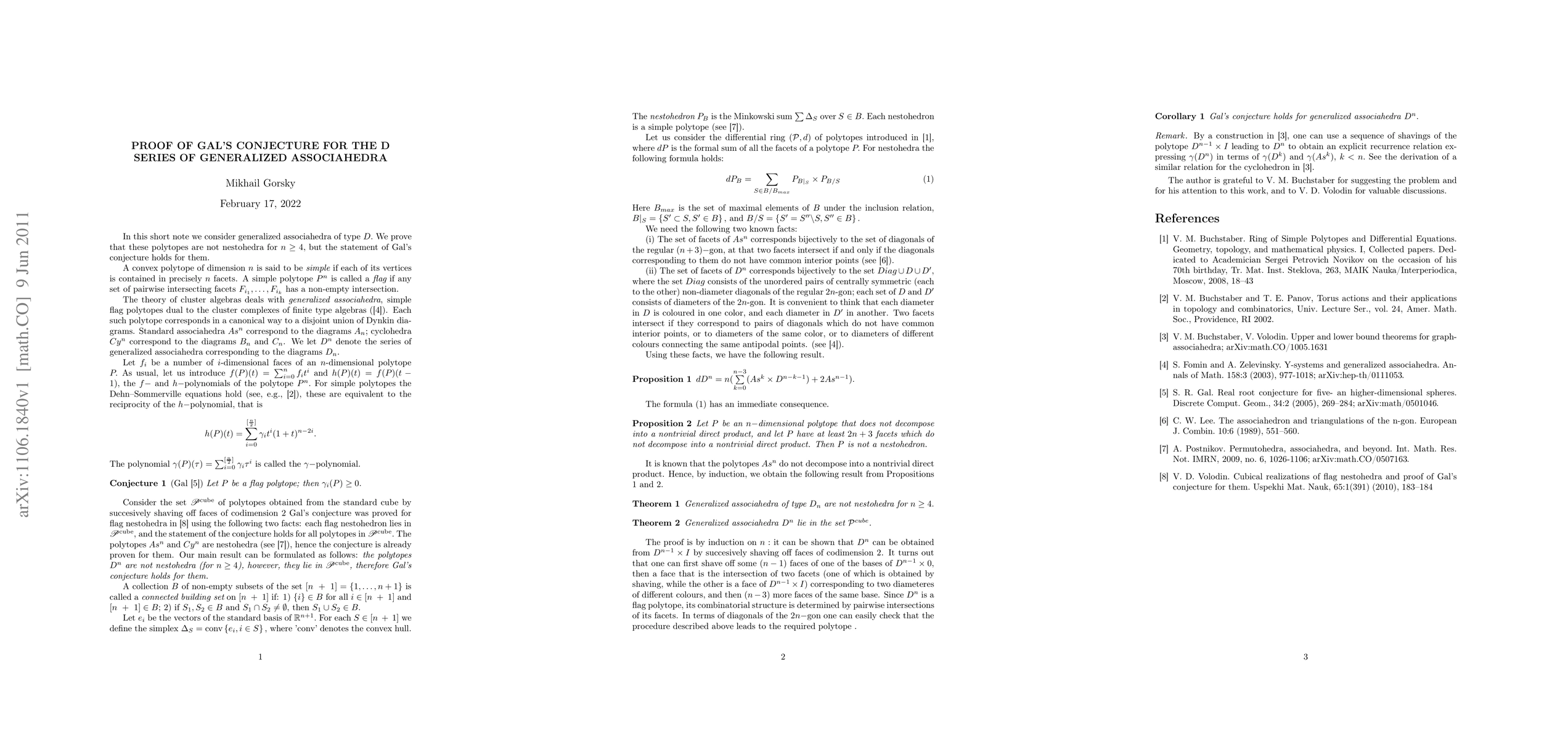 In this short note we consider generalized associahedra of type D_n. We prove that these simple flag polytopes are not nestohedra for n > 3, but the statement of Gal's conjecture holds for them.