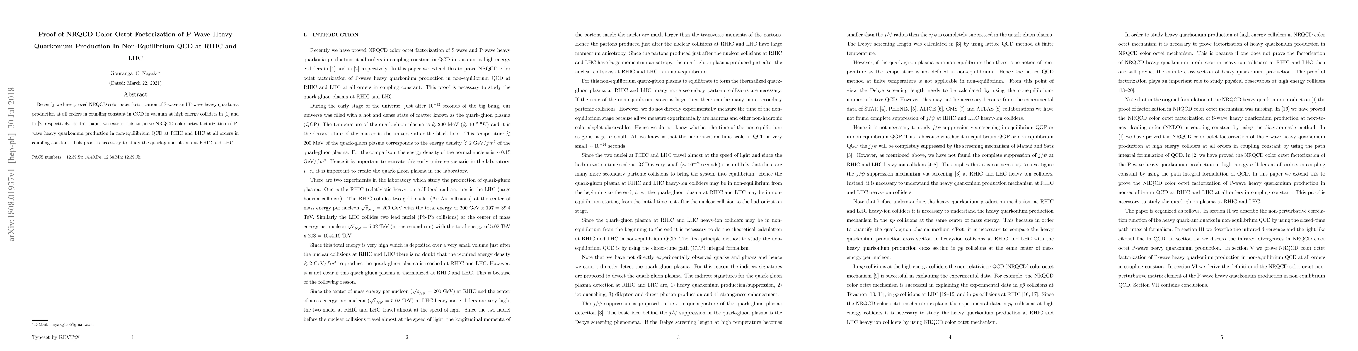 This paper extends the proof of NRQCD color octet factorization for P-wave heavy quarkonium production to non-equilibrium QCD conditions at RHIC and LHC, providing a crucial framework for studying quark-gluon plasma in high-energy colliders. This extends previous results for vacuum conditions and S-wave production.