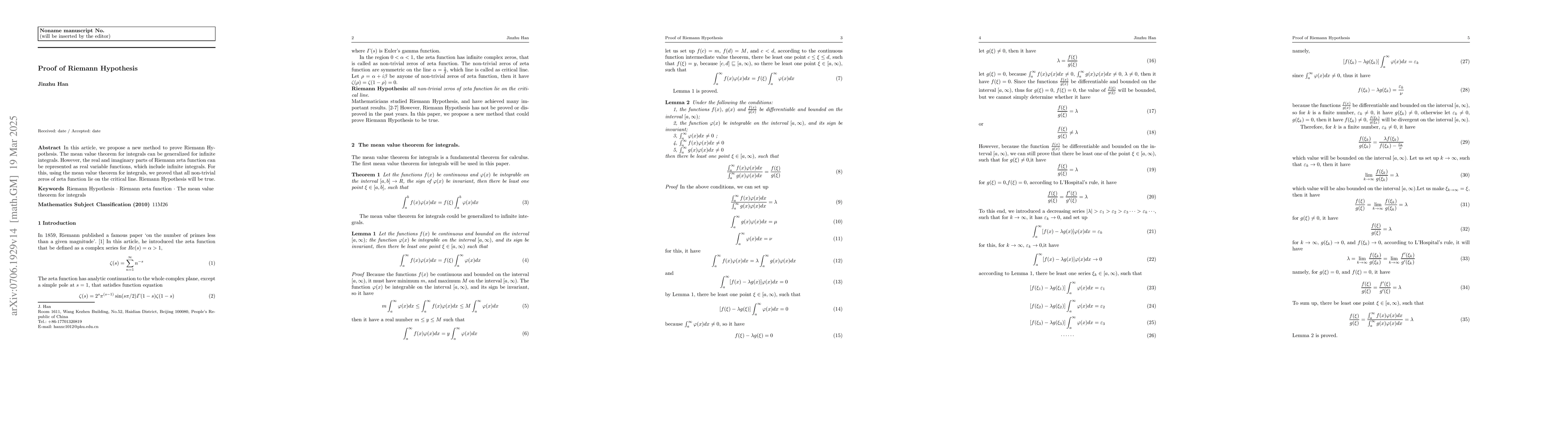 This paper claims to prove the Riemann Hypothesis by employing the mean value theorem of integrals for the function $\xi(s)$, which mirrors the non-trivial zeros of the zeta function. It concludes that all zeros of $\xi(s)$ lie on the critical line, affirming the Riemann Hypothesis.