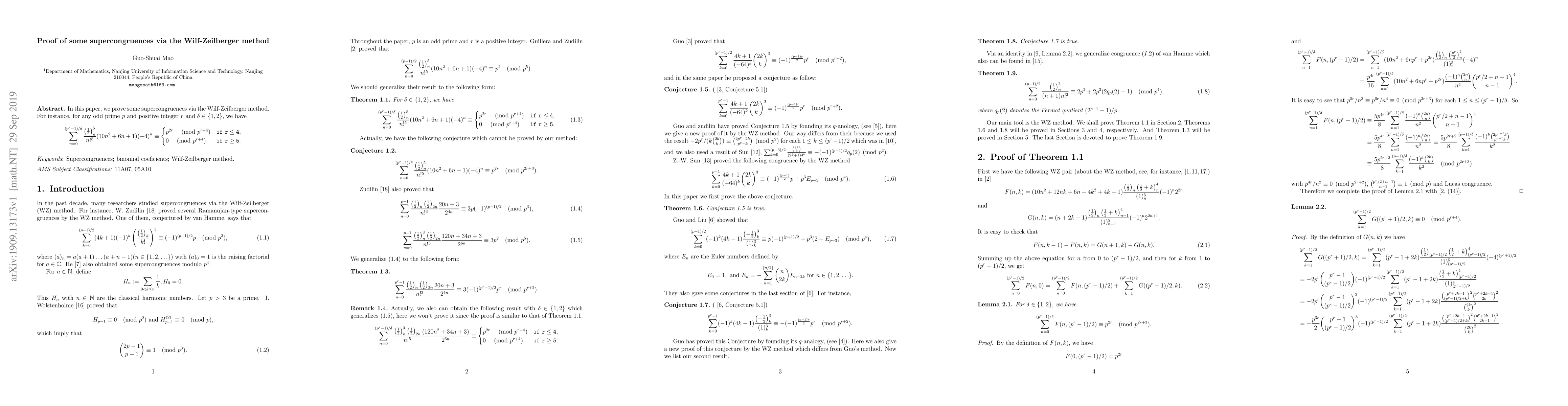Researchers prove supercongruences using the Wilf-Zeilberger method for specific cases, revealing a pattern that depends on the prime number p and positive integer r, with implications for number theory.
