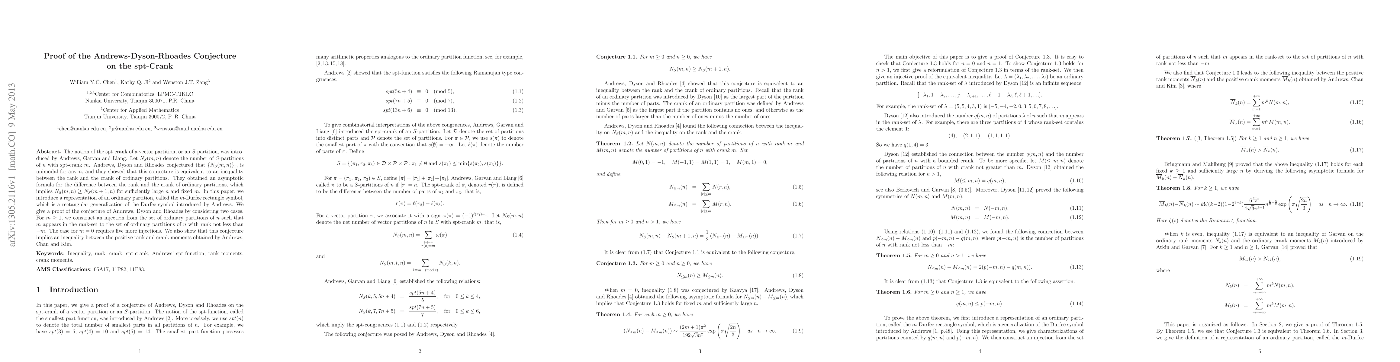 The paper presents a proof of the Andrews-Dyson-Rhoades conjecture on the spt-crank by introducing a representation of an ordinary partition called the $m$-Durfee rectangle symbol and constructing injections for different cases of $m$.