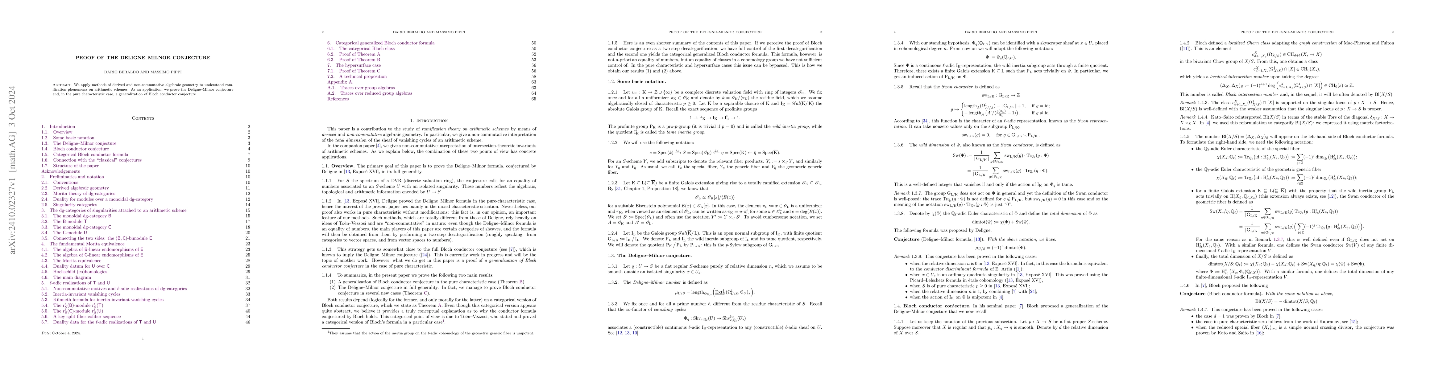The paper applies advanced techniques from derived and non-commutative algebraic geometry to explore ramification on arithmetic schemes, ultimately proving the Deligne-Milnor conjecture and a related generalization in pure characteristic.