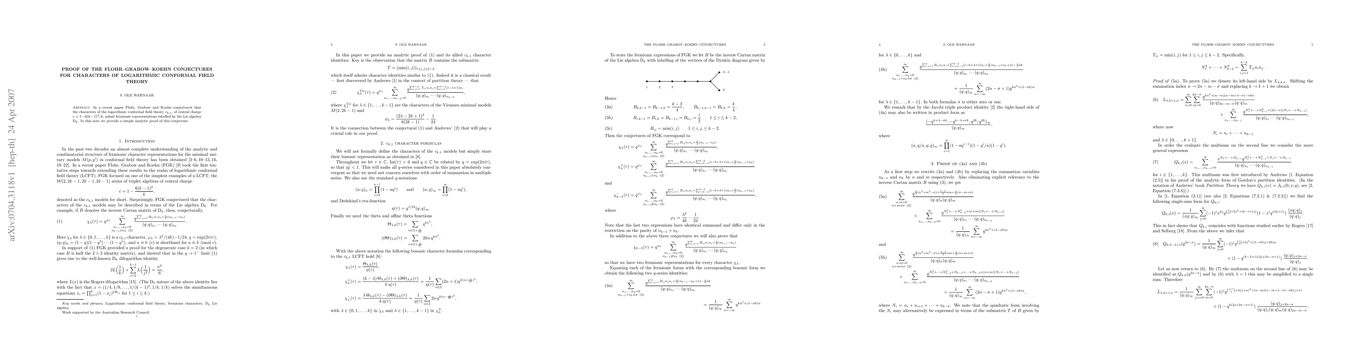 In a recent paper Flohr, Grabow and Koehn conjectured that the characters of the logarithmic conformal field theory c_{k,1}, of central charge c=1-6(k-1)^2/k, admit fermionic representations labelled by the Lie algebra D_k. In this note we provide a simple analytic proof of this conjecture.