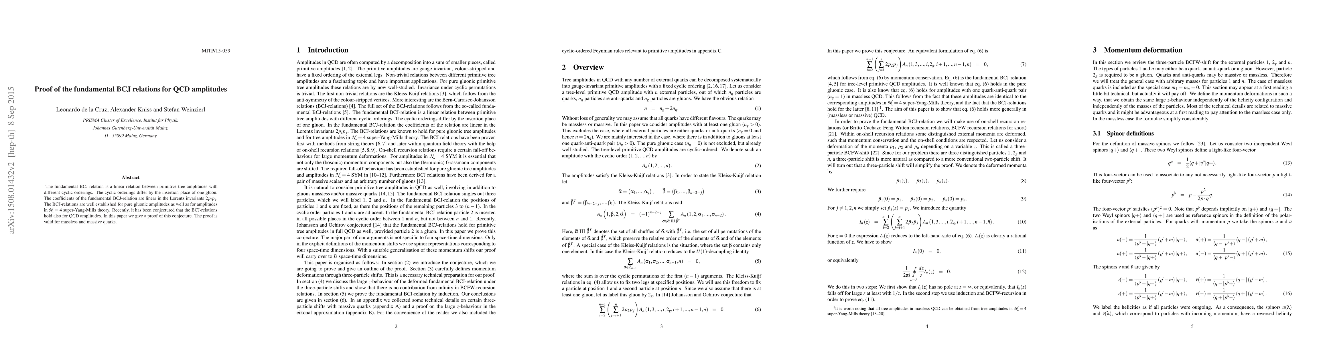 The fundamental BCJ-relation is a linear relation between primitive tree amplitudes with different cyclic orderings. The cyclic orderings differ by the insertion place of one gluon. The coefficients of the fundamental BCJ-relation are linear in the Lorentz invariants $2 p_i p_j$. The BCJ-relations are well established for pure gluonic amplitudes as well as for amplitudes in ${\mathcal N}=4$ super-Yang-Mills theory. Recently, it has been conjectured that the BCJ-relations hold also for QCD amplitudes. In this paper we give a proof of this conjecture. The proof is valid for massless and massive quarks.