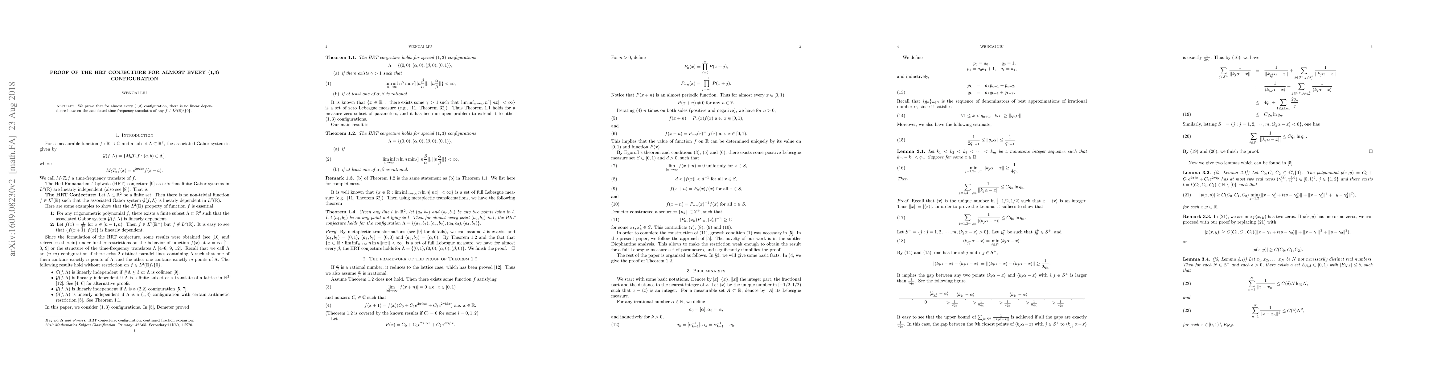 Researchers prove that for almost every (1,3) configuration, there is no linear dependence between time-frequency translates of non-zero L^2 functions, resolving the HRT conjecture.