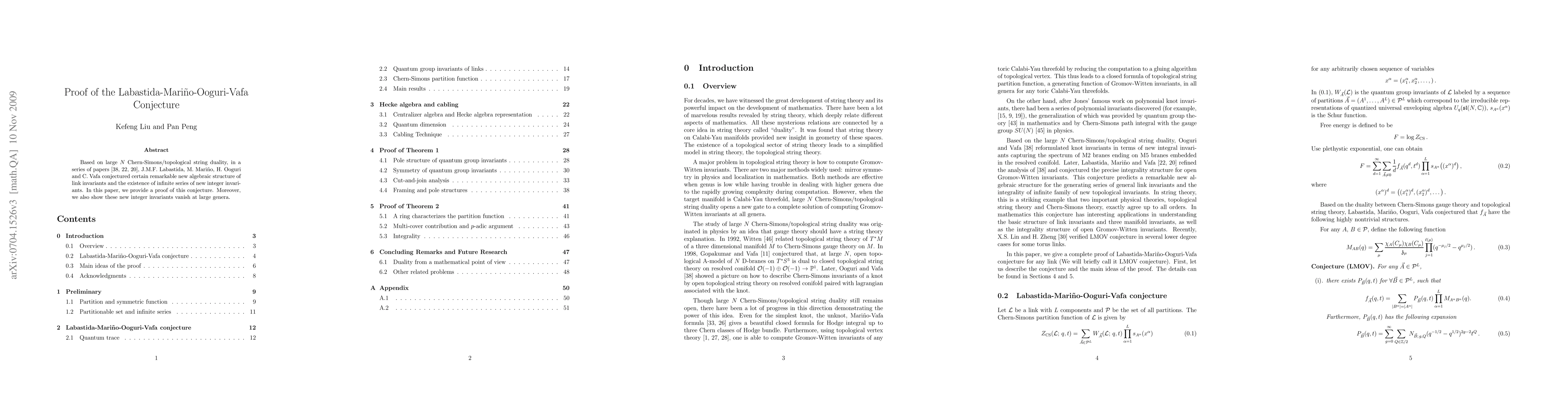 Based on large N Chern-Simons/topological string duality, in a series of papers, J.M.F. Labastida, M. Marino, H. Ooguri and C. Vafa conjectured certain remarkable new algebraic structure of link invariants and the existence of infinite series of new integer invariants. In this paper, we provide a proof of this conjecture. Moreover, we also show these new integer invariants vanish at large genera.