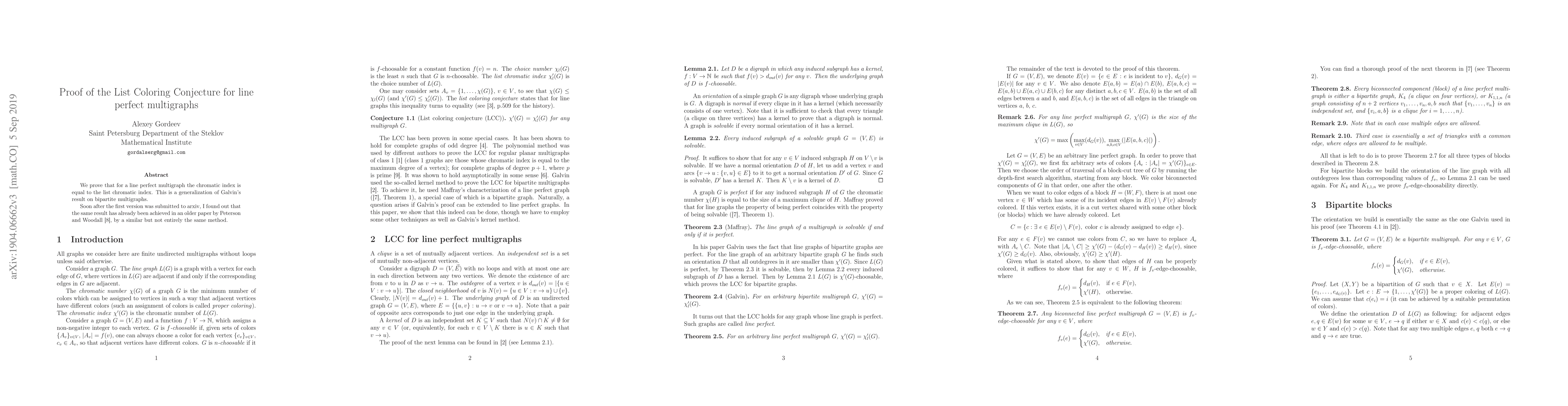 We prove that for a line perfect multigraph the chromatic index is equal to the list chromatic index. This is a generalization of Galvin's result on bipartite multigraphs. Soon after the first version was submitted to arxiv, I found out that the same result has already been achieved in an older paper by Peterson and Woodall, by a similar but not entirely the same method.