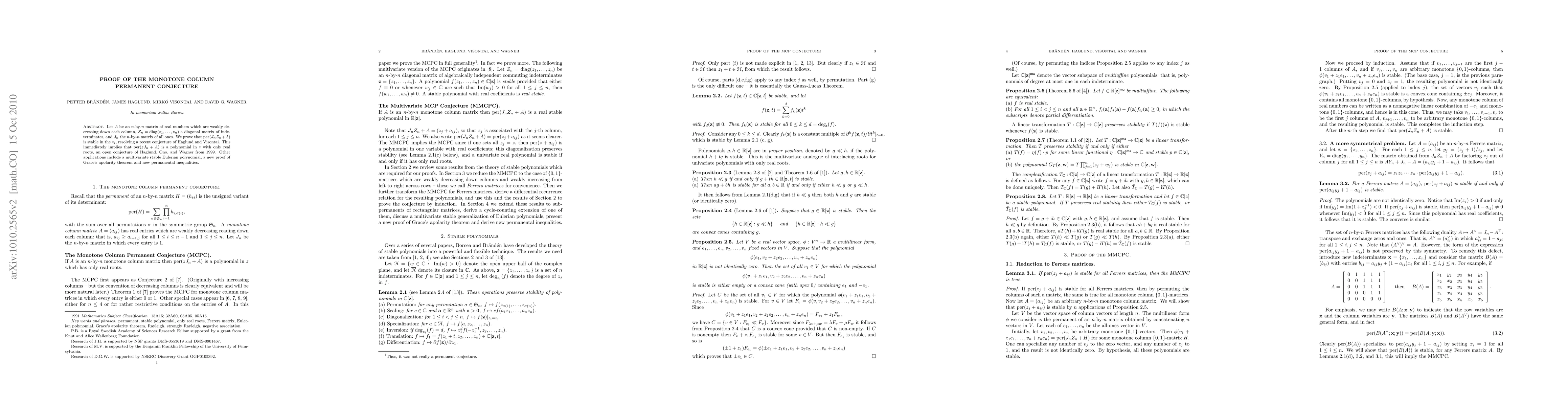 Let A be an n-by-n matrix of real numbers which are weakly decreasing down each column, Z_n = diag(z_1,..., z_n) a diagonal matrix of indeterminates, and J_n the n-by-n matrix of all ones. We prove that per(J_nZ_n+A) is stable in the z_i, resolving a recent conjecture of Haglund and Visontai. This immediately implies that per(zJ_n+A) is a polynomial in z with only real roots, an open conjecture of Haglund, Ono, and Wagner from 1999. Other applications include a multivariate stable Eulerian polynomial, a new proof of Grace's apolarity theorem and new permanental inequalities.