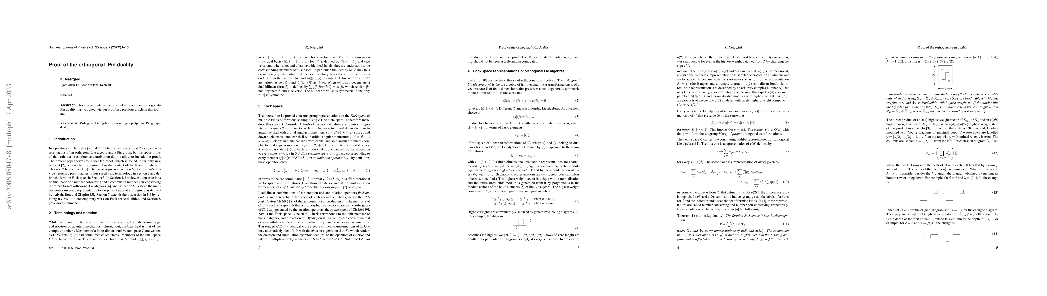 Summary: This paper provides a detailed proof for the orthogonal-Pin duality theorem, which was previously referenced without proof in a journal article, establishing a crucial connection in the theory.