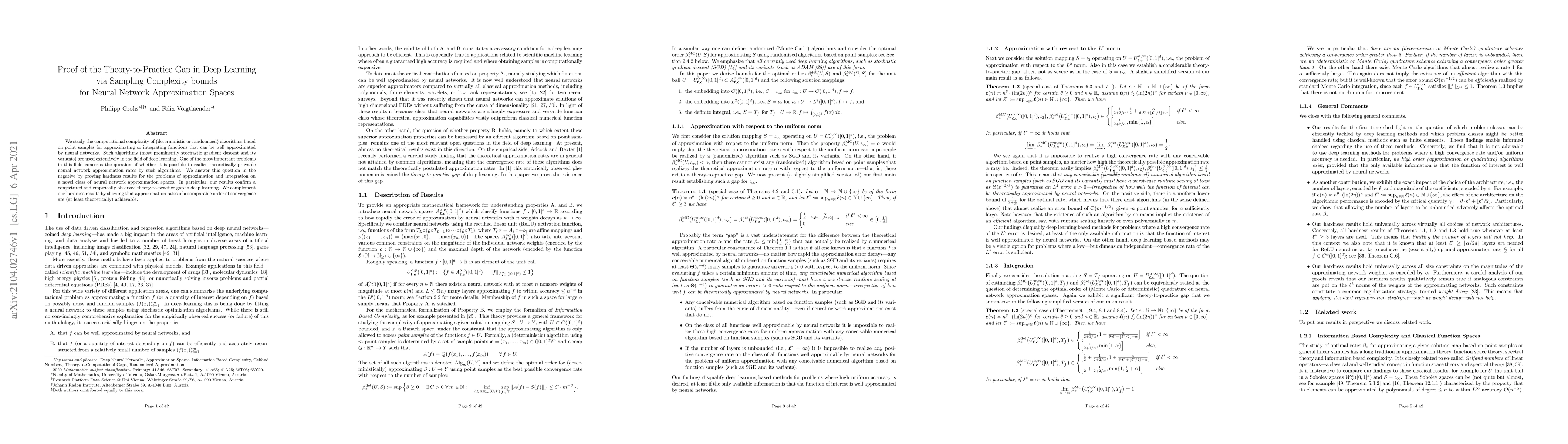 This paper demonstrates a theory-to-practice gap in deep learning by proving computational hardness for algorithms approximating neural networks, confirming a conjectured gap. It also shows that comparable convergence rates are theoretically achievable.