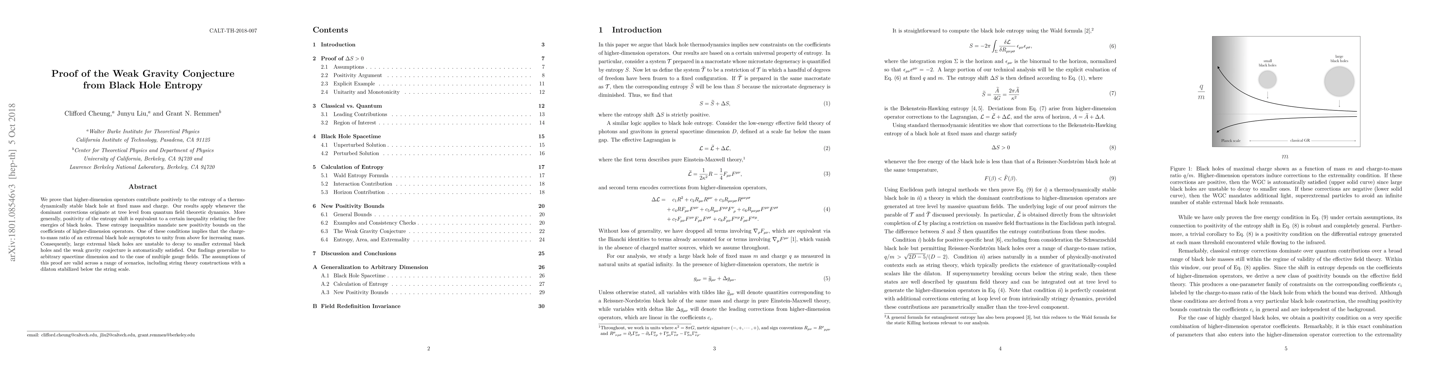 This paper proves the weak gravity conjecture by showing that higher-dimension operators positively contribute to black hole entropy, leading to instability in large extremal black holes. The findings generalize across spacetime dimensions and multiple gauge fields, applicable in various theoretical frameworks including string theory.
