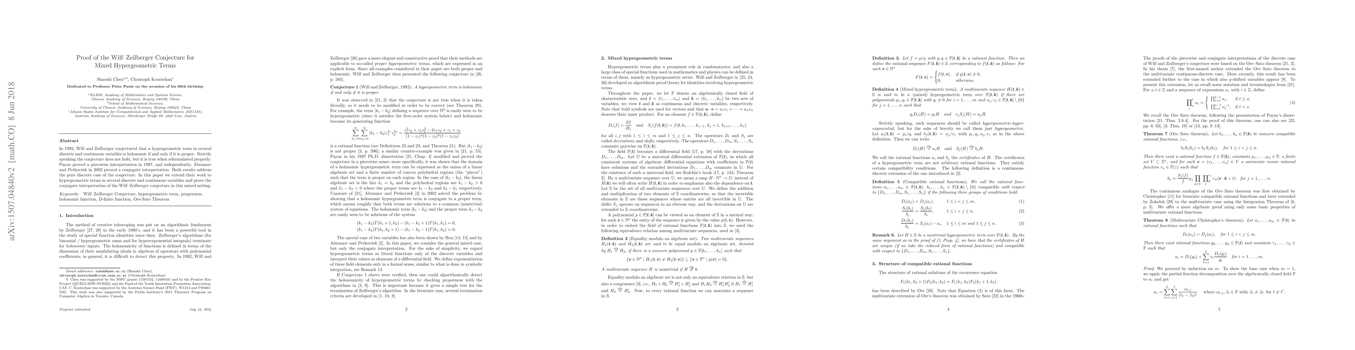 Researchers prove a mixed setting version of the Wilf-Zeilberger Conjecture, proving it is true for hypergeometric terms in several discrete and continuous variables using a conjugate interpretation.