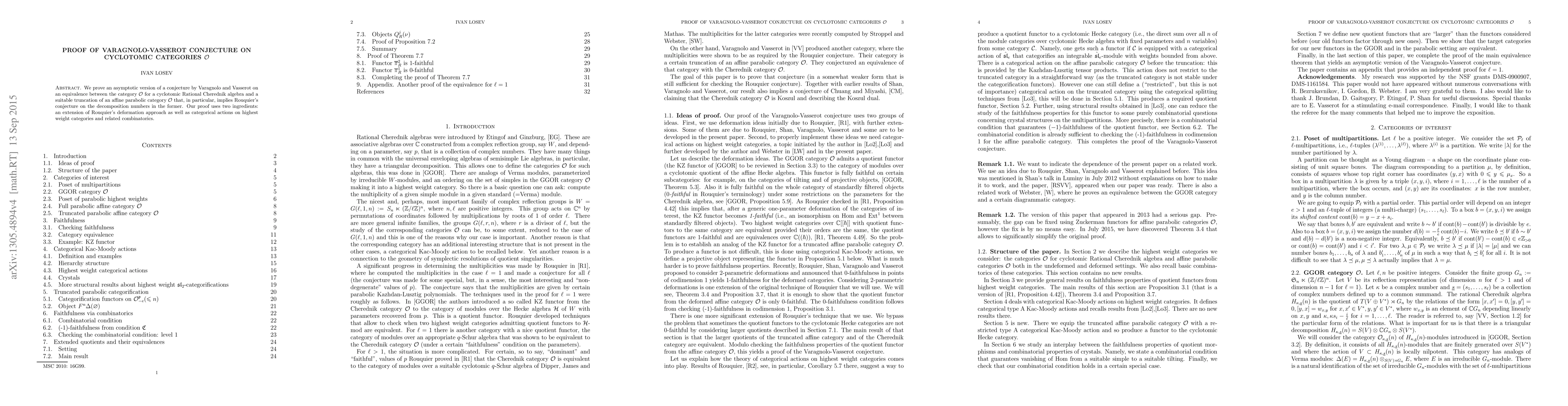 We prove an asymptotic version of a conjecture by Varagnolo and Vasserot on an equivalence between the category O for a cyclotomic Rational Cherednik algebra and a suitable truncation of an affine parabolic category O. We prove an asymptotic version of a conjecture by Varagnolo and Vasserot on an equivalence between the category O for a cyclotomic Rational Cherednik algebra and a suitable truncation of an affine parabolic category O that, in particular, implies Rouquier's conjecture on the decomposition numbers in the former. Our proof uses two ingredients: an extension of Rouquier's deformation approach as well as categorical actions on highest weight categories and related combinatorics. This text replaces arXiv:1207.1299.