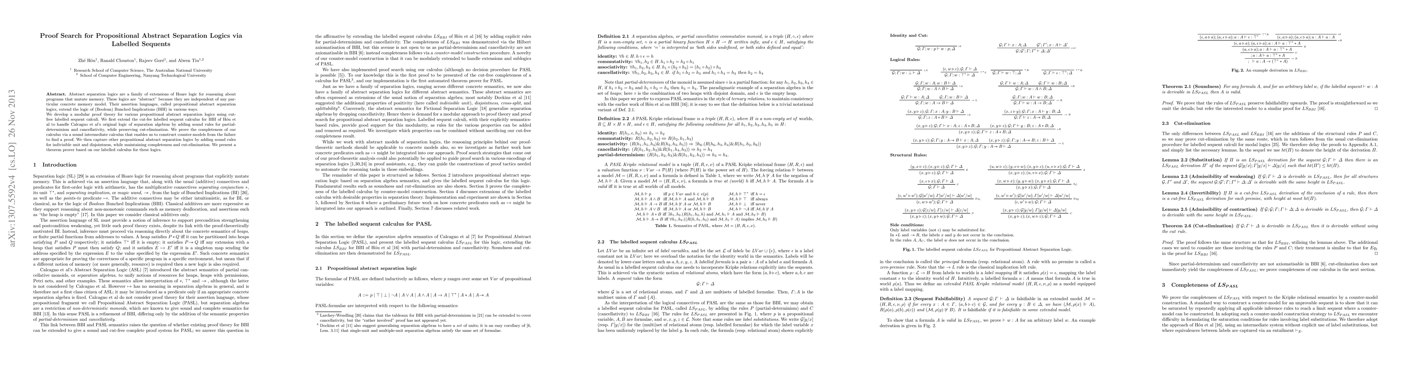 This paper develops a modular proof theory for propositional abstract separation logics using cut-free labelled sequent calculi, extending existing calculi to handle partial-determinism, cancellativity, indivisible units, and disjointness, and presents a theorem prover based on these extensions. The completeness of the proposed calculi is proven through the construction of counter-models from proof failures.