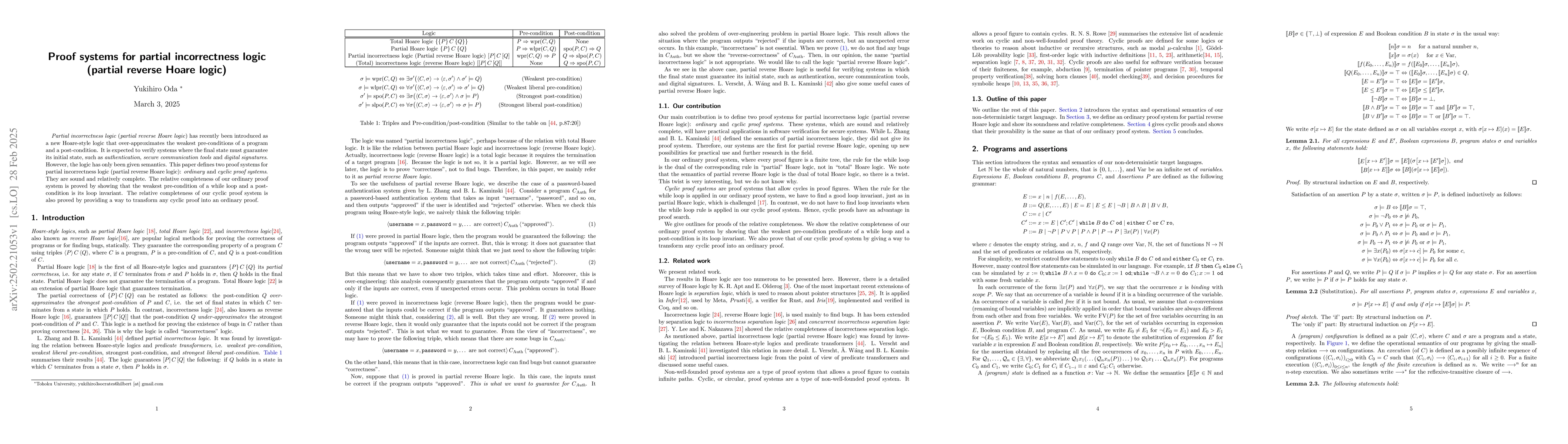 The paper introduces two proof systems, ordinary and cyclic, for partial incorrectness logic (partial reverse Hoare logic), demonstrating their soundness and relative completeness.
