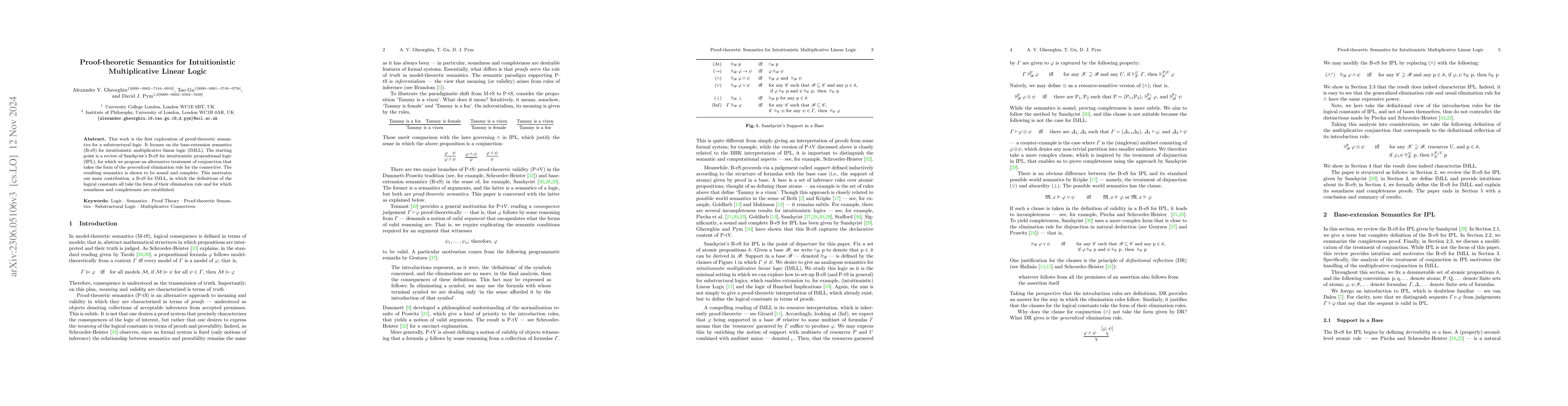 This paper develops proof-theoretic semantics for intuitionistic multiplicative linear logic (IMLL) using base-extension semantics (B-eS), inspired by Sandqvist’s approach for intuitionistic propositional logic (IPL). It establishes soundness and completeness for IMLL’s logical constants defined by their elimination rules.