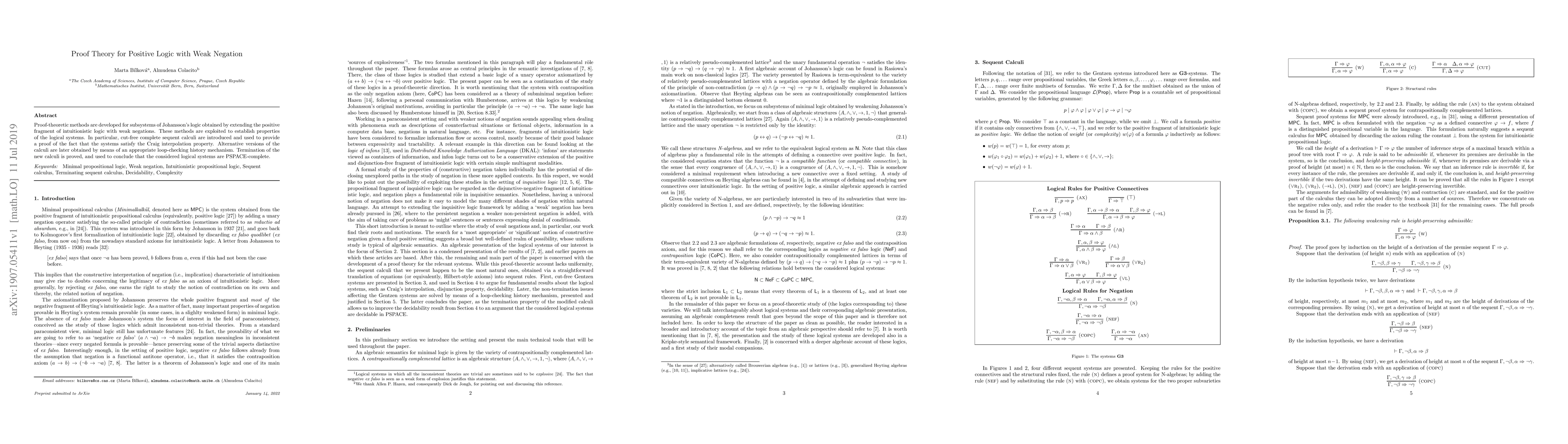 This paper develops proof-theoretic methods for systems of positive logic with weak negation, establishing the Craig interpolation property and proving PSPACE-completeness.