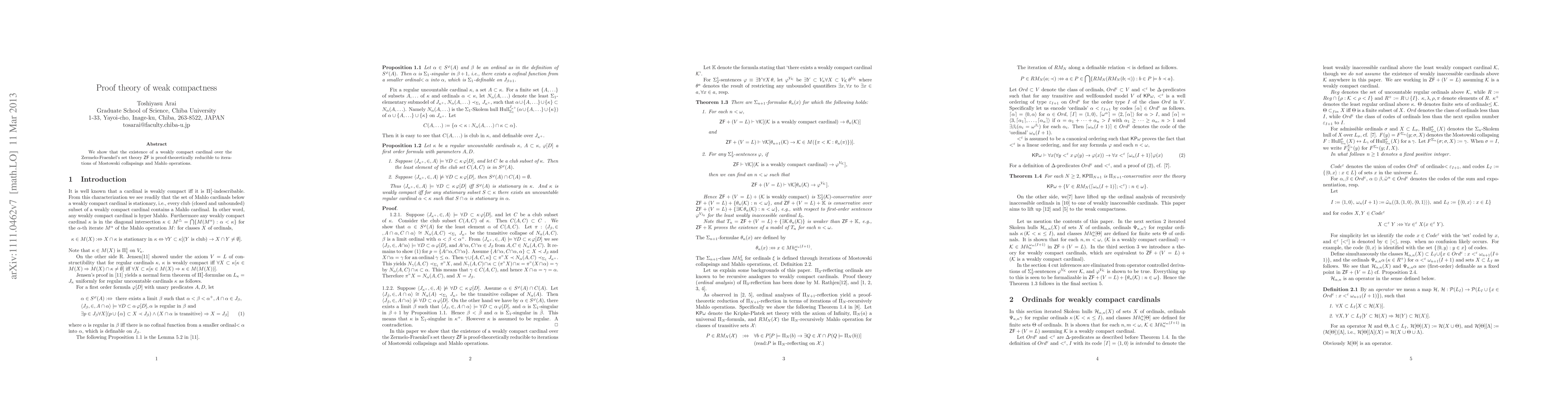 We show that the existence of a weakly compact cardinal over the Zermelo-Fraenkel's set theory is proof-theoretically reducible to iterations of Mostowski collapsings and Mahlo operations.