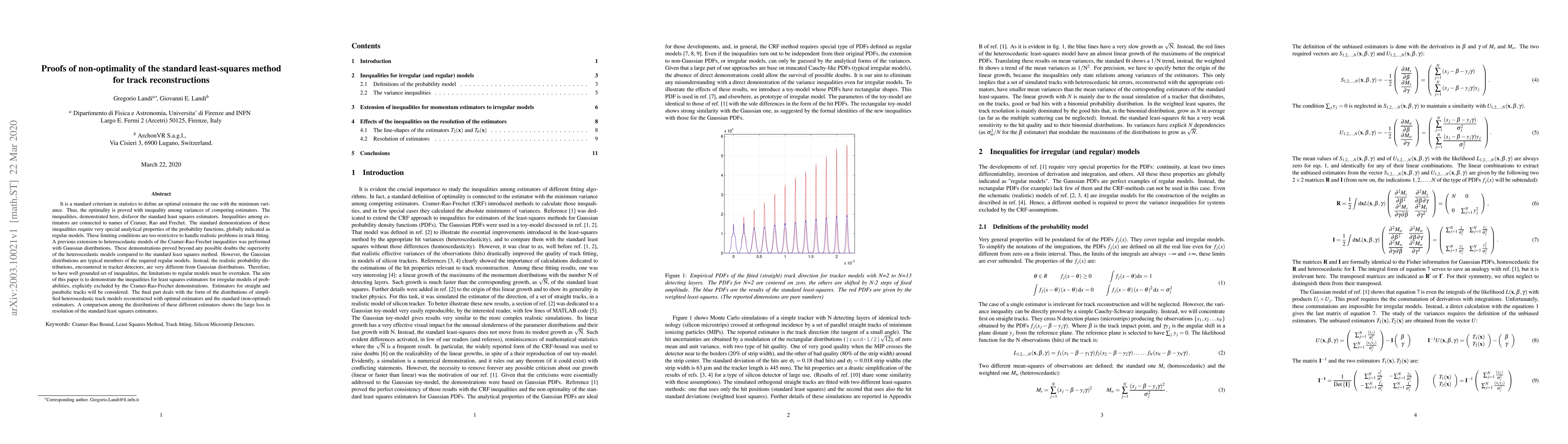 This paper demonstrates that the standard least-squares method is suboptimal for track reconstructions, showing inequalities that favor heteroscedastic models over least squares, especially for non-Gaussian, irregular probability distributions typically found in tracker detectors. The comparison reveals significant resolution losses with the standard method.