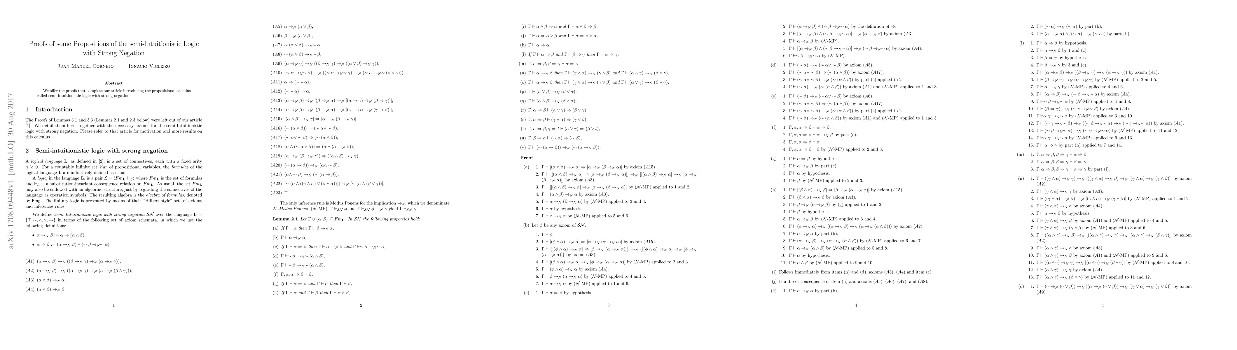 We offer the proofs that complete our article introducing the propositional calculus called semi-intuitionistic logic with strong negation.