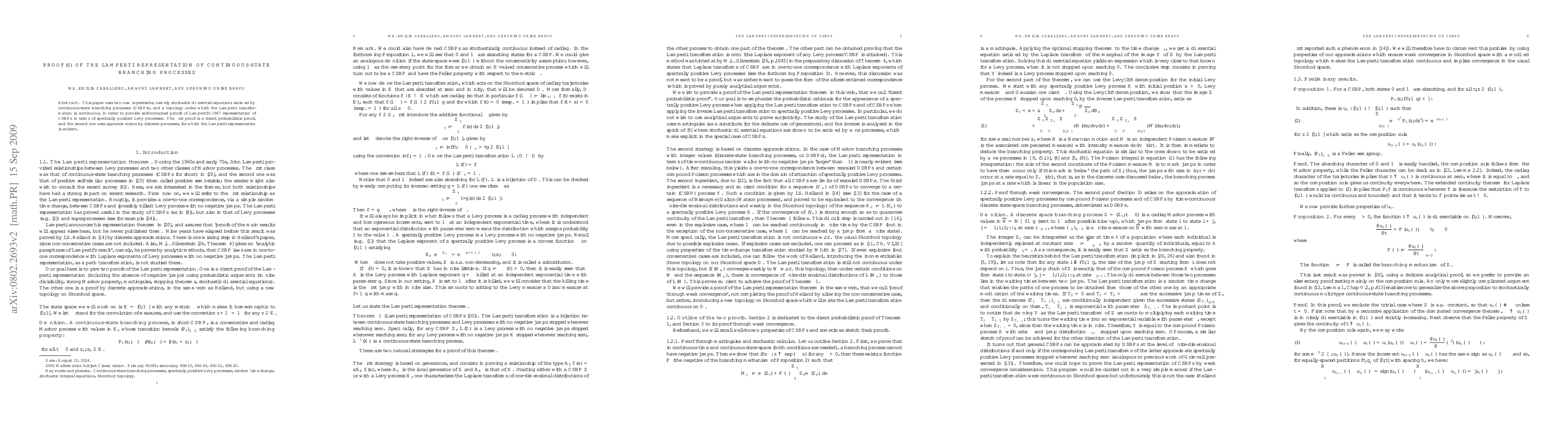 This paper presents two proofs of Lamperti's 1967 representation of continuous-state branching processes using stochastic differential equations and a continuous topology, offering a direct probabilistic proof and an alternative proof via discrete approximations.