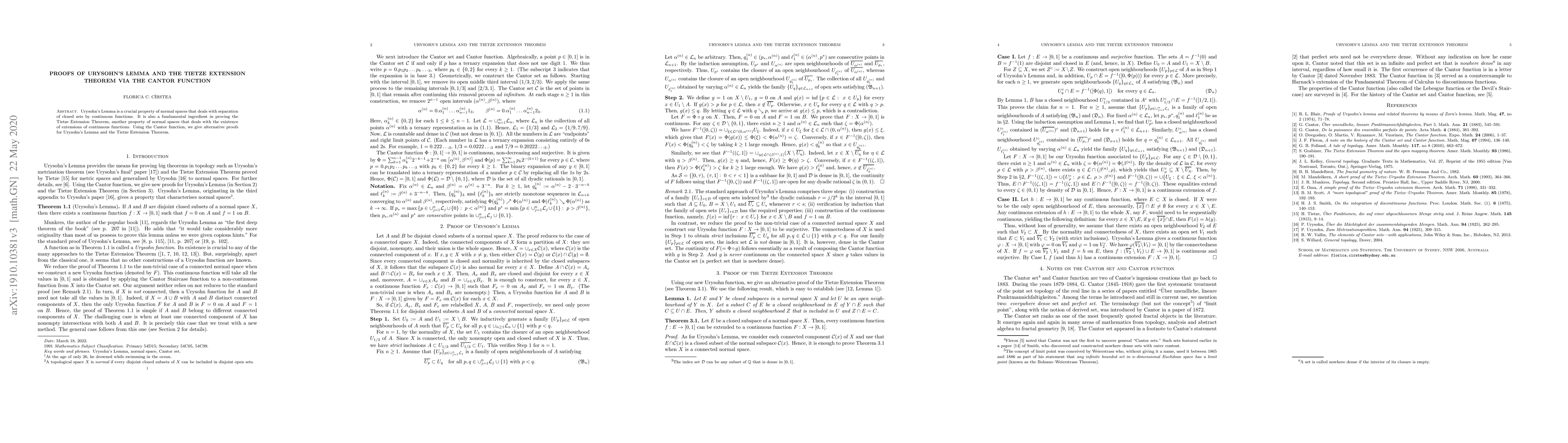This paper provides alternative proofs for Urysohn's Lemma and the Tietze Extension Theorem using the Cantor function, highlighting the significance of the Cantor function in demonstrating properties of normal spaces.