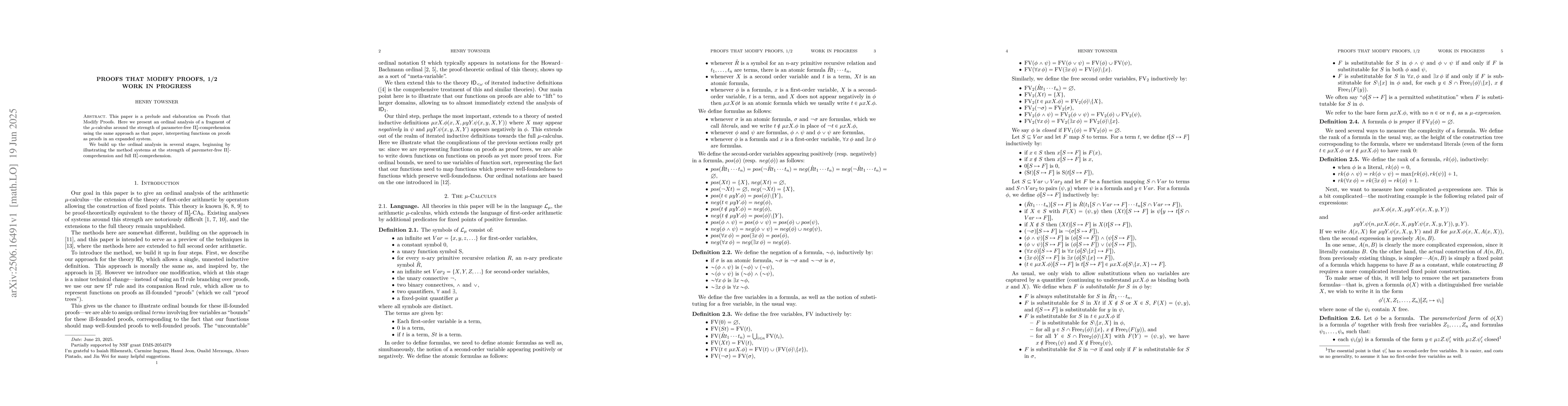 This paper is a prelude and elaboration on Proofs that Modify Proofs. Here we present an ordinal analysis of a fragment of the $\mu$-calculus around the strength of parameter-free $\Pi^1_2$-comprehension using the same approach as that paper, interpreting functions on proofs as proofs in an expanded system. We build up the ordinal analysis in several stages, beginning by illustrating the method systems at the strength of paremeter-free $\Pi^1_1$-comprehension and full $\Pi^1_1$-comprehension.