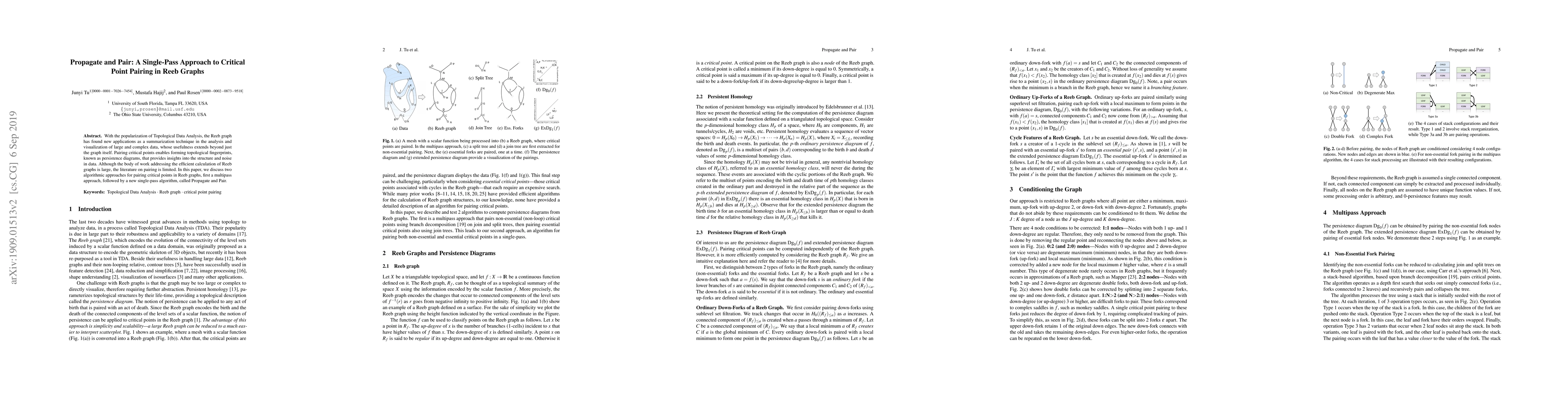 This paper presents a new single-pass algorithm, Propagate and Pair, for efficiently pairing critical points in Reeb graphs, addressing a gap in the literature and providing a more streamlined approach for topological data analysis.