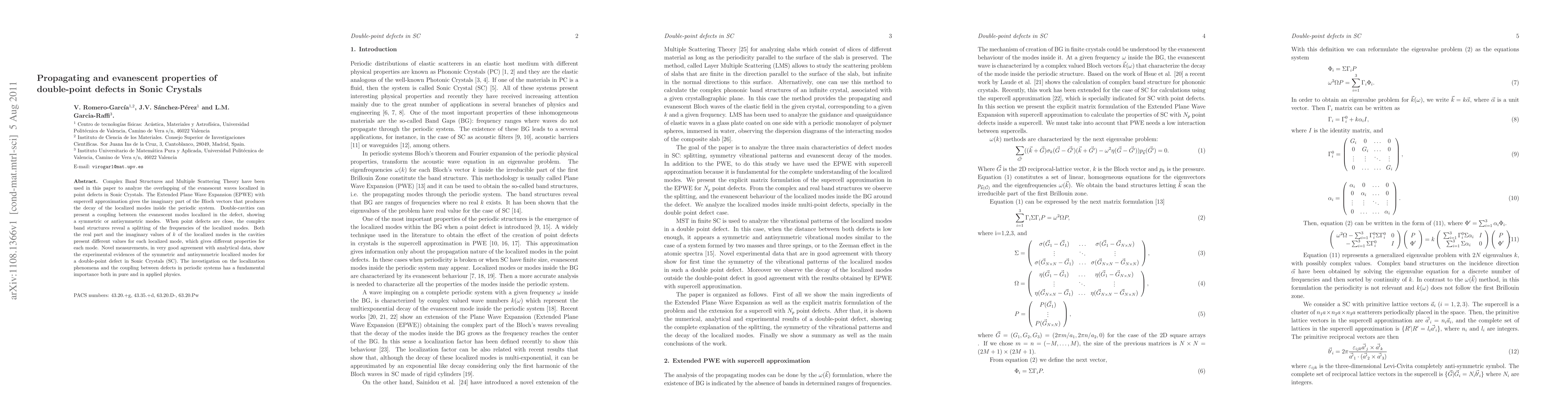 This paper uses Complex Band Structures and Multiple Scattering Theory to analyze evanescent wave localization in double-point defects in Sonic Crystals, revealing splitting of frequencies and coupling between symmetric and antisymmetric modes. Experimental results confirm theoretical predictions of these localized modes.