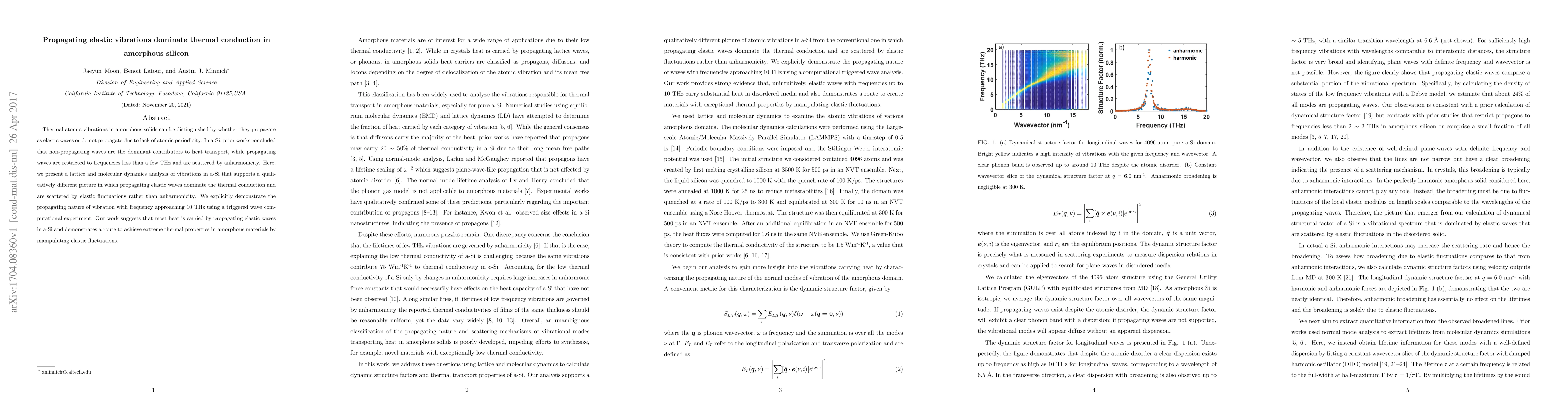 This research reveals that propagating elastic vibrations, rather than non-propagating waves, dominate thermal conduction in amorphous silicon. The study uses lattice and molecular dynamics analysis to show that these elastic waves carry most of the heat, challenging previous conclusions and suggesting a new approach to control thermal properties in amorphous materials.