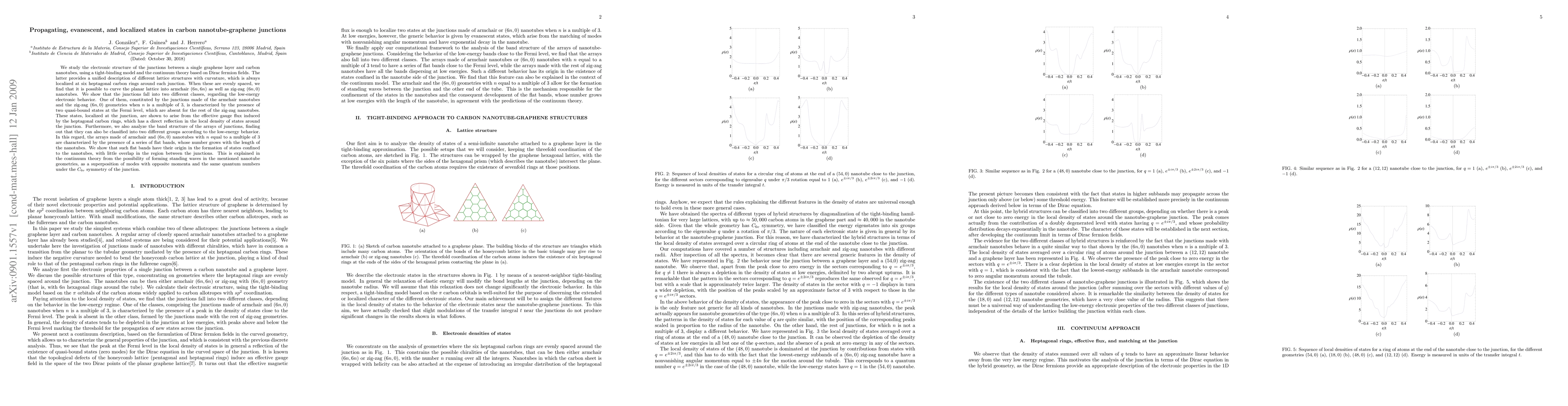 This paper explores the electronic structure of junctions between graphene and carbon nanotubes using tight-binding and Dirac fermion field models, revealing distinct low-energy behaviors. It identifies two classes of junctions, with specific armchair and zigzag nanotube configurations showing quasi-bound states and flat bands due to effective gauge flux and standing wave formation.