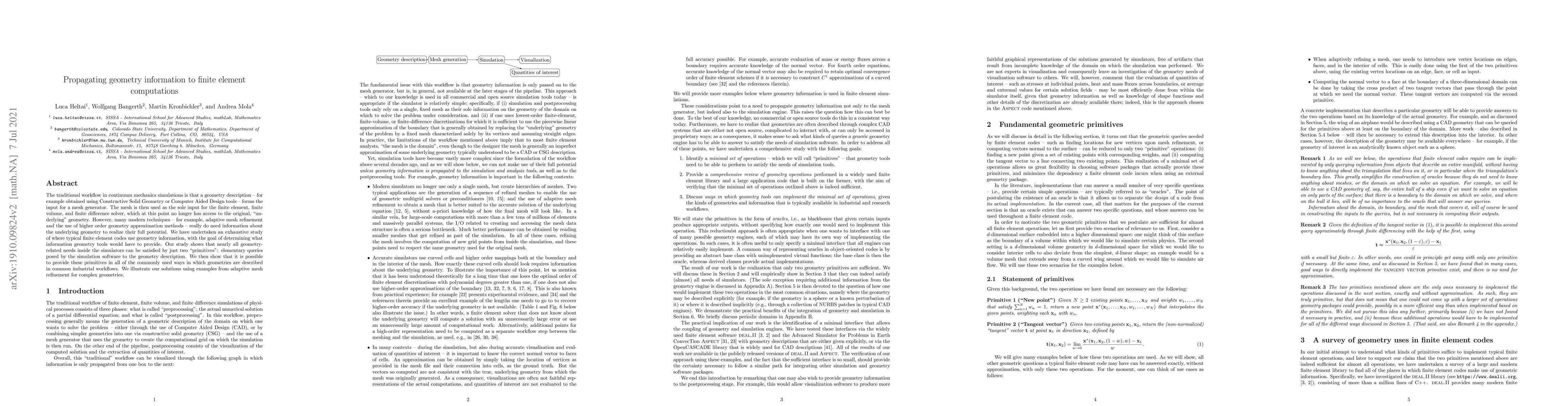 This paper investigates how to propagate geometry information to finite element simulations, identifying that most geometry-related needs can be met through two basic queries from the simulation software. The study demonstrates that these primitives can be provided in various common industrial geometry description methods.