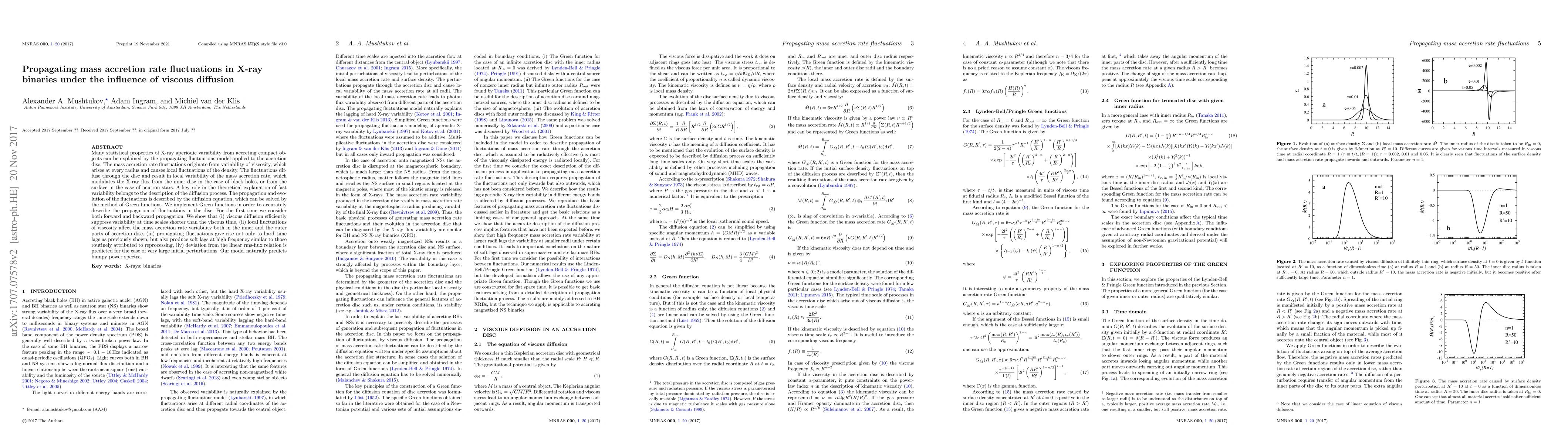 This paper investigates how fluctuations in mass accretion rates in X-ray binaries propagate through accretion discs under viscous diffusion, employing Green functions to describe the diffusion process. The study finds that viscous diffusion suppresses short-term variability and reveals both hard and soft time lags in the X-ray flux, along with deviations from linear rms-flux relations for large initial perturbations.