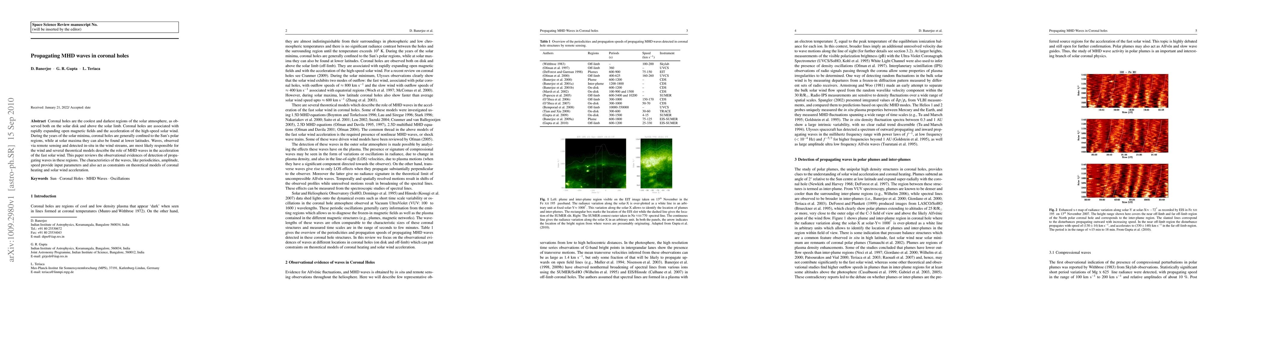 This paper reviews observational evidence of propagating magnetohydrodynamic (MHD) waves in coronal holes, which are regions of the solar atmosphere characterized by open magnetic fields and high-speed solar wind. The study highlights the characteristics of these waves and their implications for theoretical models of coronal heating and solar wind acceleration.