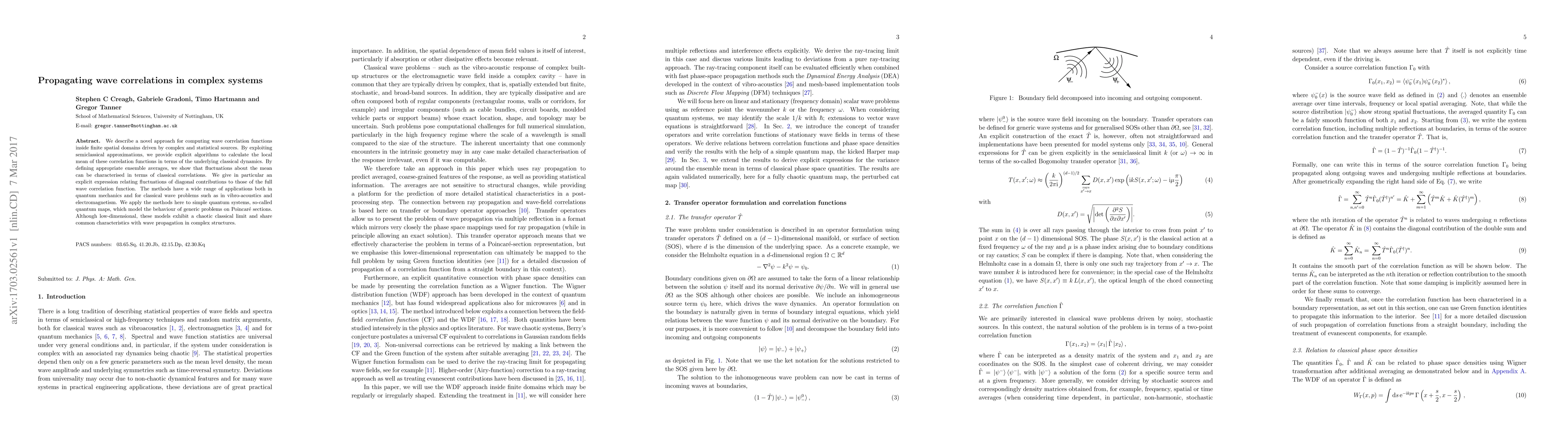 We describe a novel approach for computing wave correlation functions inside finite spatial domains driven by complex and statistical sources. By exploiting semiclassical approximations, we provide explicit algorithms to calculate the local mean of these correlation functions in terms of the underlying classical dynamics. By defining appropriate ensemble averages, we show that fluctuations about the mean can be characterised in terms of classical correlations. We give in particular an explicit expression relating fluctuations of diagonal contributions to those of the full wave correlation function. The methods have a wide range of applications both in quantum mechanics and for classical wave problems such as in vibro-acoustics and electromagnetism. We apply the methods here to simple quantum systems, so-called quantum maps, which model the behaviour of generic problems on Poincar\'e sections. Although low-dimensional, these models exhibit a chaotic classical limit and share common characteristics with wave propagation in complex structures.