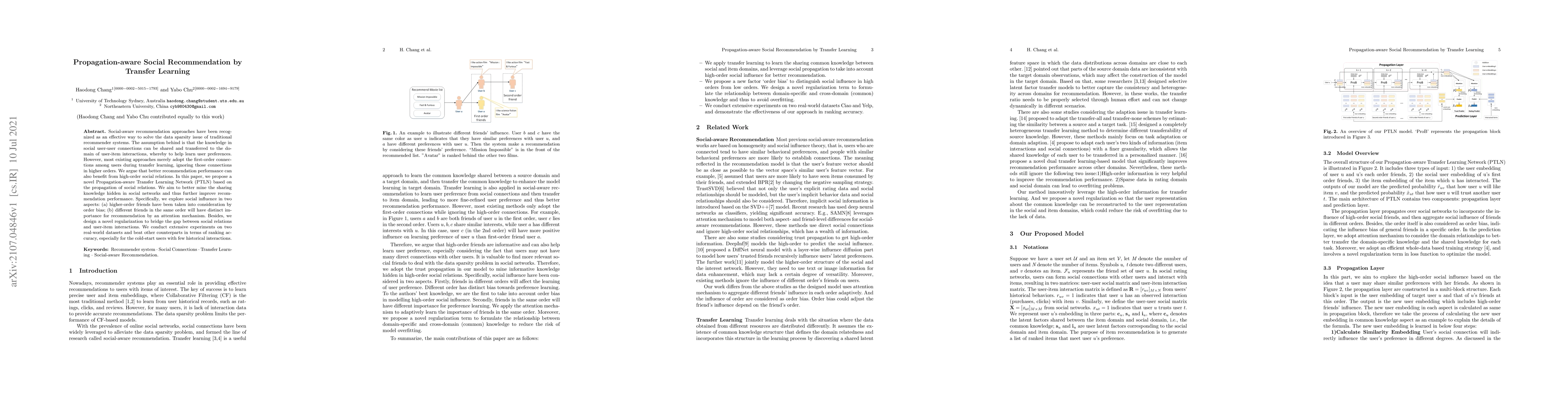 This paper proposes a novel Propagation-aware Transfer Learning Network (PTLN) that leverages higher-order social relations to enhance social recommendation performance. The approach incorporates an attention mechanism to differentiate the importance of friends in the same order and a regularization technique to bridge social relations and user-item interactions, achieving better accuracy, especially for cold-start users.