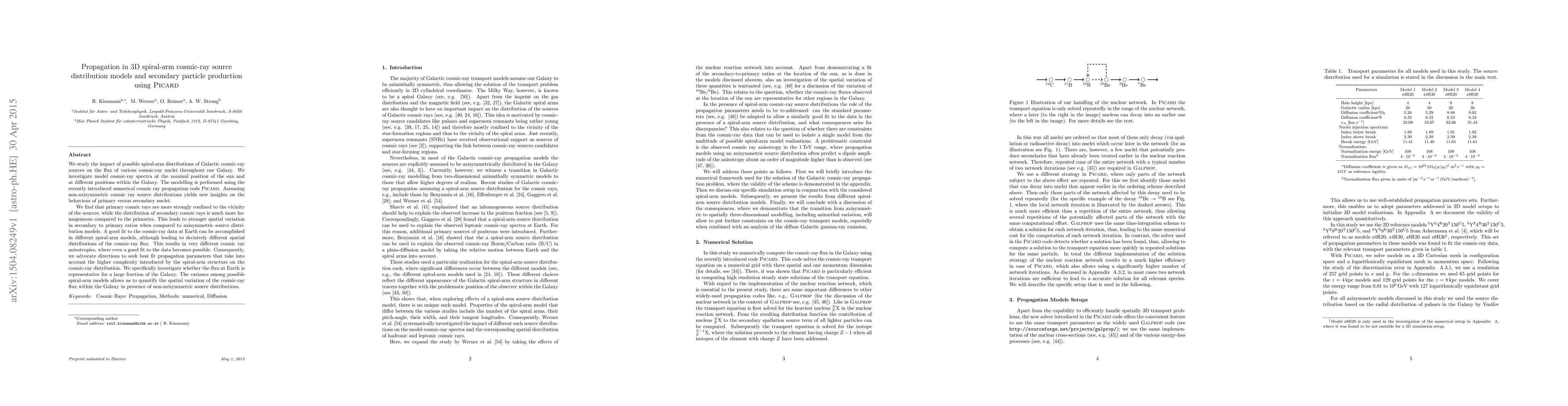 This study uses the PICARD code to model cosmic-ray propagation in spiral-arm distributions, revealing that non-axisymmetric source models lead to more homogeneous secondary cosmic-ray distributions compared to primary ones. The findings suggest significant spatial variations in secondary to primary ratios and cosmic-ray anisotropies.