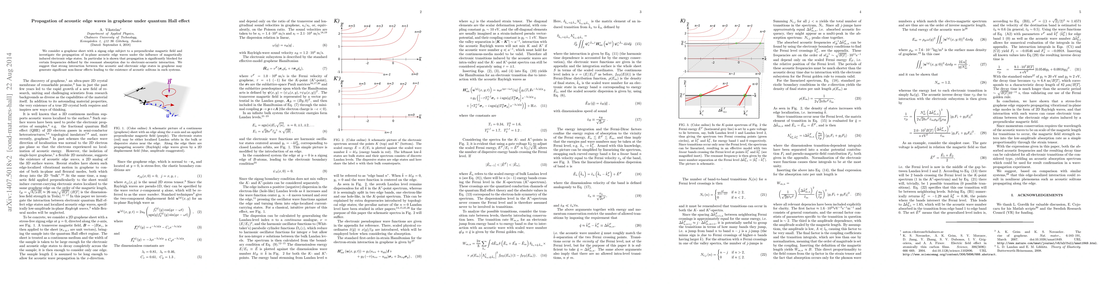 This paper investigates the propagation of acoustic edge waves in zigzag-edged graphene under a perpendicular magnetic field, revealing significant blockage at specific frequencies due to resonant absorption from electronic-acoustic interactions. The study suggests that strong coupling between these edge states may lead to non-linear effects and the formation of acoustic solitons.