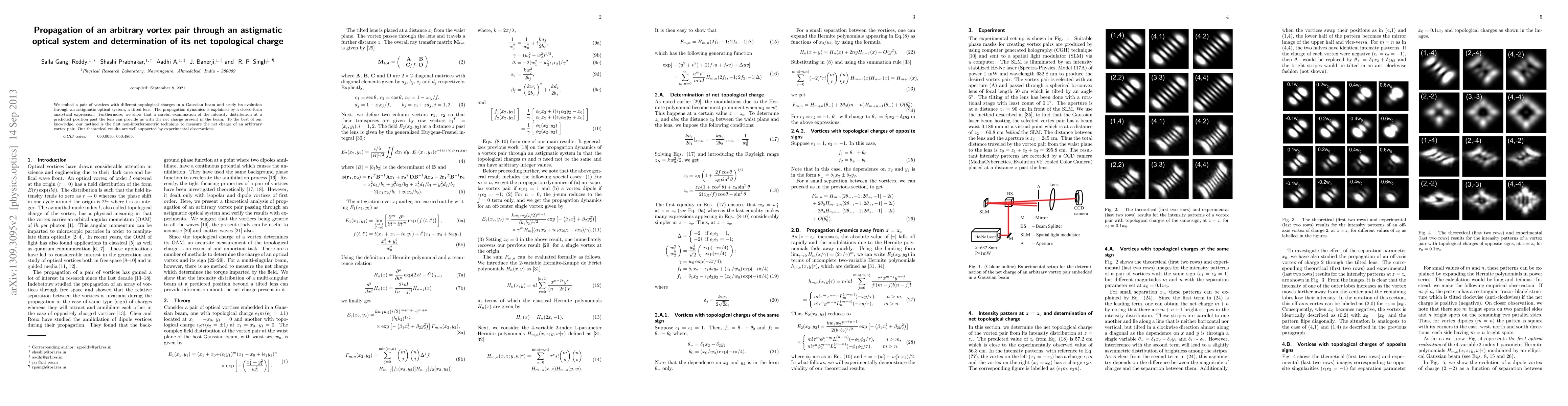 This paper investigates the propagation of a vortex pair through an astigmatic optical system, deriving a closed-form analytical expression for its dynamics. It introduces a novel non-interferometric method to determine the net topological charge of the vortex pair based on intensity distribution analysis, supported by experimental verification.