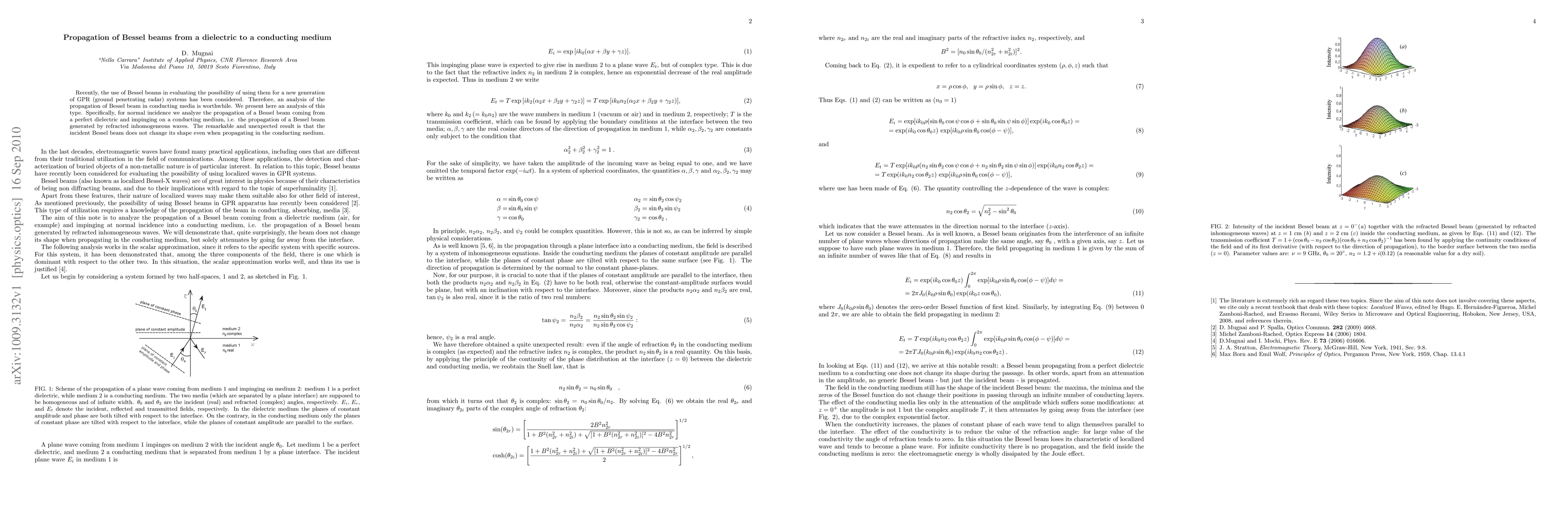 This paper analyzes the propagation of Bessel beams from a dielectric to a conducting medium, finding that the beam maintains its shape despite the transition, which could enhance the use of Bessel beams in ground penetrating radar systems.