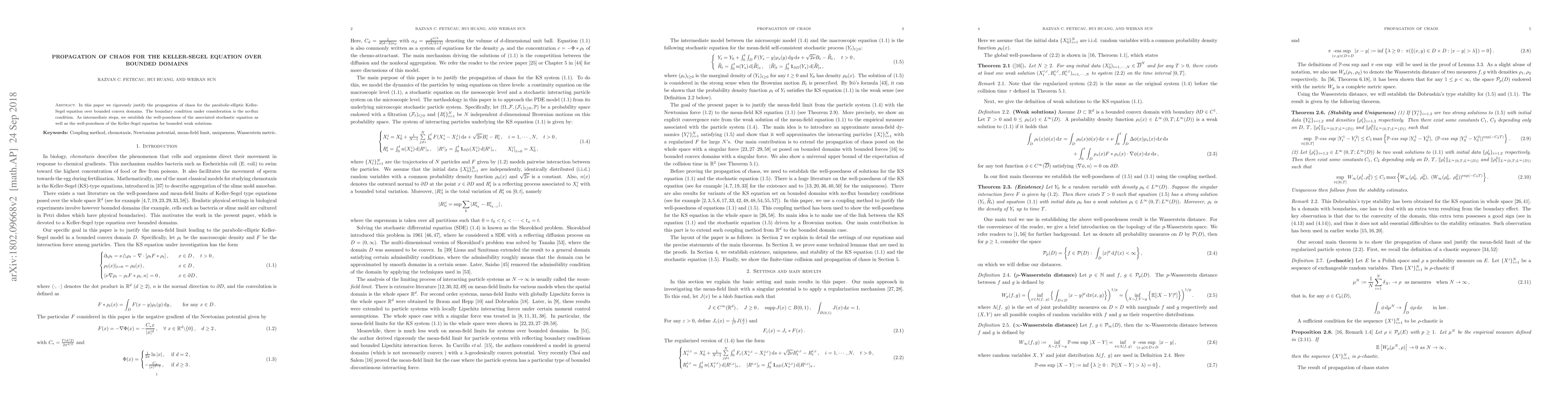 In this paper we rigorously justify the propagation of chaos for the parabolic-elliptic Keller-Segel equation over bounded convex domains. The boundary condition under consideration is the no-flux condition. As intermediate steps, we establish the well-posedness of the associated stochastic equation as well as the well-posedness of the Keller-Segel equation for bounded weak solutions.