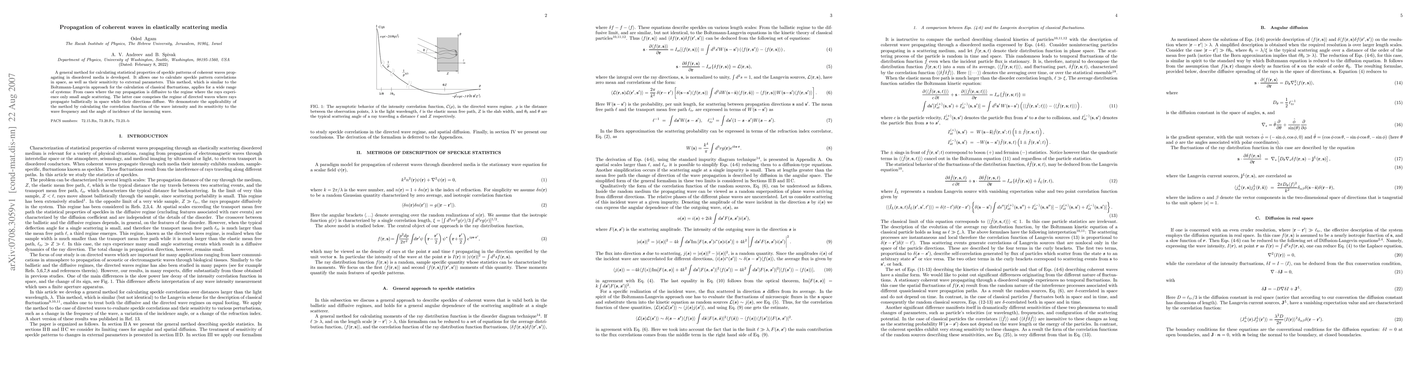 This paper develops a method to calculate statistical properties of speckle patterns for coherent waves in elastically scattering media, applicable from diffusive to ballistic regimes. It demonstrates the method's effectiveness by analyzing wave intensity correlations and their sensitivity to frequency and incidence angle.
