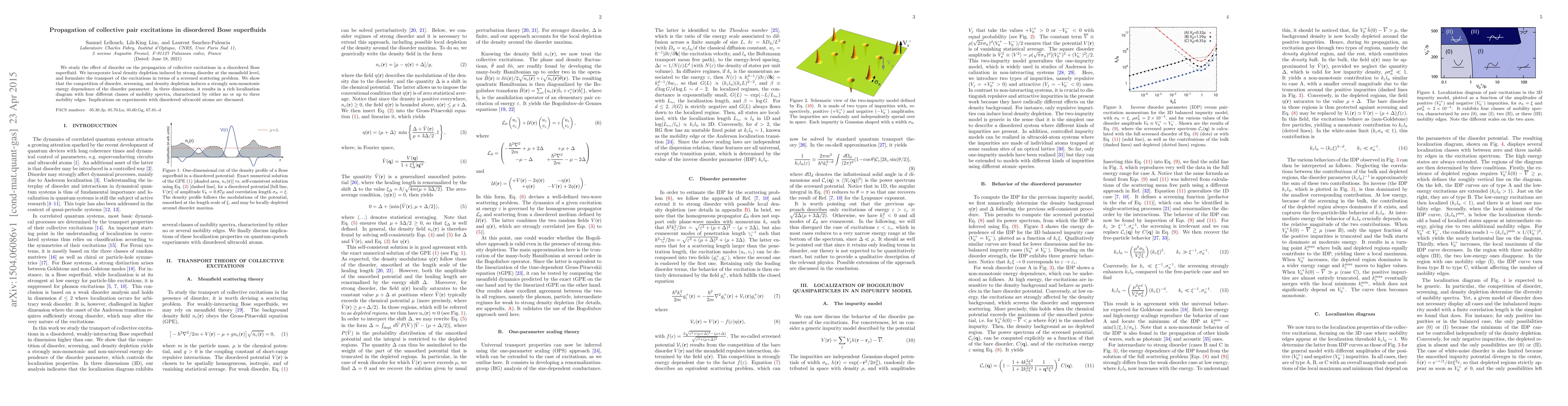 This paper investigates how disorder affects collective pair excitations in Bose superfluids, revealing a complex interplay between disorder, screening, and density depletion that leads to a non-monotonic energy dependence of the disorder parameter. In three dimensions, this results in four distinct mobility spectra classes with varying mobility edges, with implications for experiments involving disordered ultracold atomic systems.