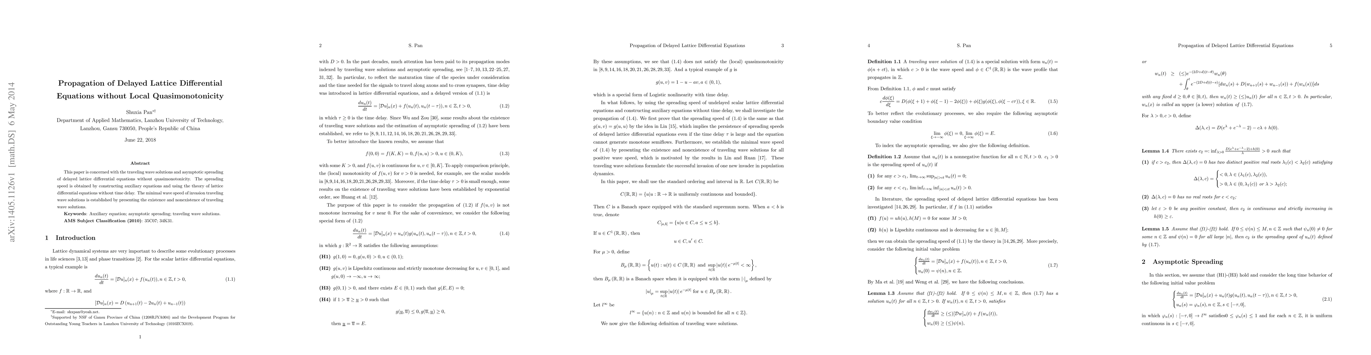 This paper investigates traveling wave solutions and asymptotic spreading of delayed lattice differential equations lacking quasimonotonicity. It establishes the minimal wave speed using auxiliary equations and lattice differential equation theory without time delay.
