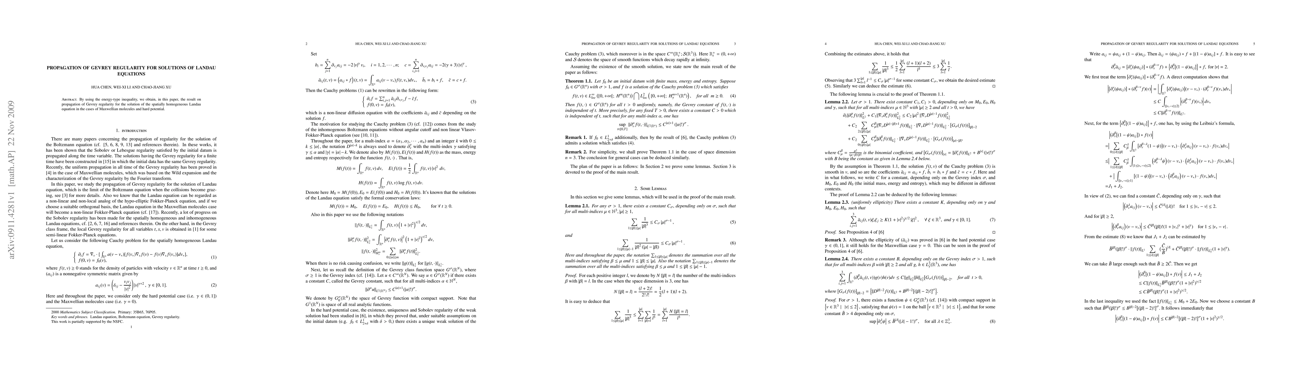 Summary: This paper demonstrates the propagation of Gevrey regularity for solutions to the Landau equation for spatially homogeneous systems, specifically for Maxwellian molecules and hard potential scenarios, using an energy-type inequality approach.
